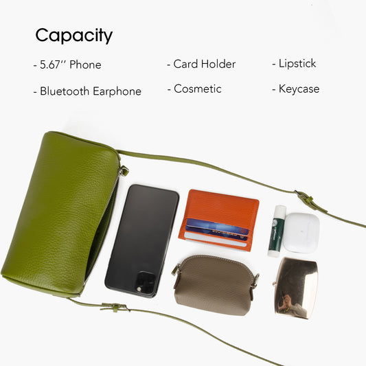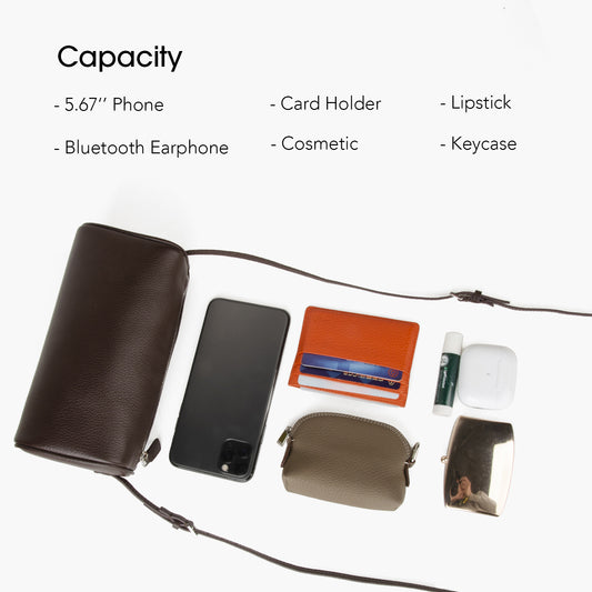 Korean-style genuine leather mini handbag, women's cylindrical crossbody bag